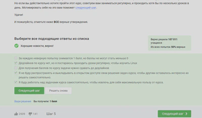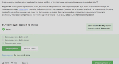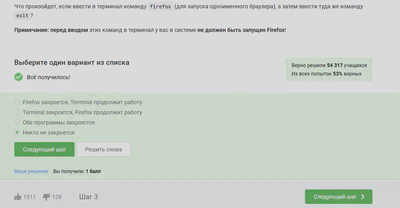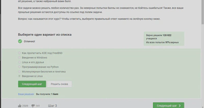 В первом этапе внешнего курса мне нужно было: рассмотреть общую информацию, рассмотреть способы установки Linux, освоить Linux, запустить Terminal, а также изучить несколько базовых команд для работы в нём, рассмотреть запуск исполняемых файлов, рассмотреть ввод/вывод, рассмотреть скачивание файлов из интернета, рассмотреть работу с архивами, рассмотреть способы поиска файлов и ответить на тестовые вопросы.